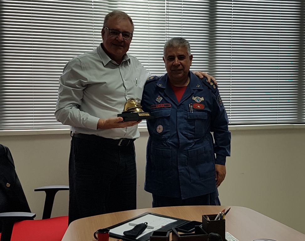 O presidente da ABVESC, Ivan Hudler, e o secretário executivo Heitor Ribeiro Filho, recepcionaram o Coronel BM Cesar de Assumpção Nunes, comandante da 1ª Região de Bombeiros Militar; o Tenente-Coronel BM Fabiano Bastos, comandante do 7°Batalhão de Bombeiros Militar; a Major BM Priscila Casagrande, subcomandante do 7° BBM; e a Capitão BM Polliana Müller, comandante da 4ª Companhia de Bombeiros Militar de Joinville. Os militares foram presenteados com livros sobre a história dos bombeiros voluntários no Brasil e o relatório de atividades da ABVESC. Por sua vez, entregaram uma lembrança aos bombeiros voluntários.