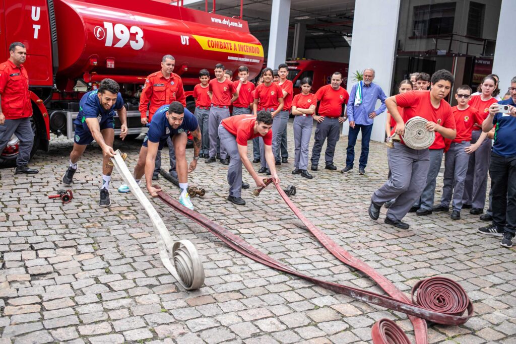 Durante a visita, os atletas conheceram a estrutura da instituição, entenderam de perto o trabalho bombeiril e participaram de atividades ao lado de crianças e adolescentes atendidos pelo projeto social dos Bombeiros. Entre as dinâmicas, estiveram em uma mini partida de vôlei e brincadeiras que simulavam o cotidiano da corporação, como a conexão mais rápido das mangueiras ao caminhão-tanque e iniciar uma operação de combate a incêndio.