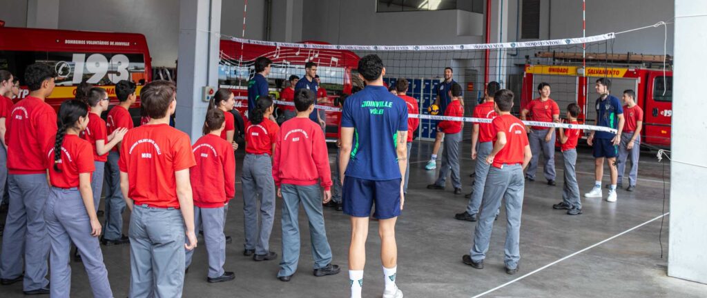 Os atletas, comissão técnica e diretoria do Joinville Vôlei, equipe que atualmente disputa a Superliga A do cenário nacional, viveram, na quarta-feira (24), uma experiência diferente fora das quadras. O grupo esteve na Unidade Central dos Bombeiros Voluntários de Joinville, entidade com 133 anos de história e referência nacional no trabalho de prevenção e atendimento à comunidade.