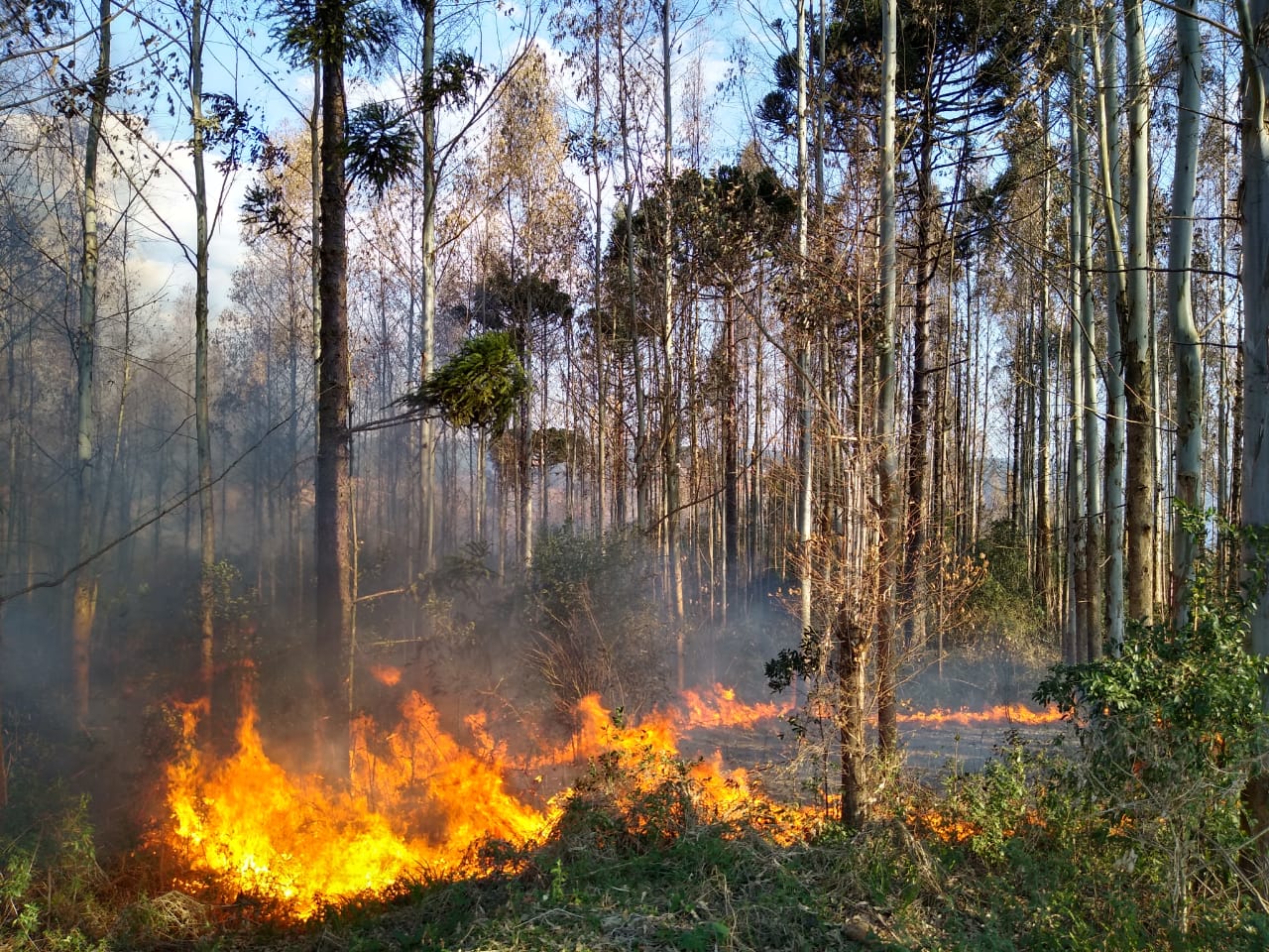Incêndio em área de reflorestamento combatido pelos Bombeiros Voluntários de Caçador