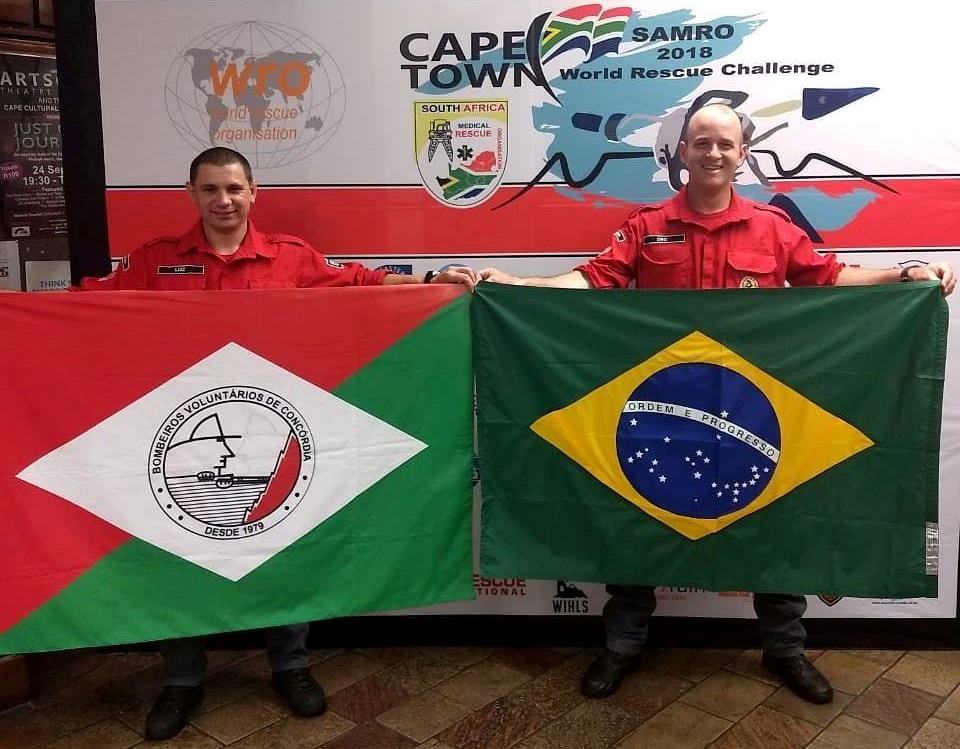 Os bombeiros voluntários Maicol Roberto Oro e Luiz Carlos Benini, do Corpo de Bombeiros Voluntários de Concórdia, conquistaram o sexto lugar no Desafio Mundial de Resgate 2018 (World Rescue Challenge), que ocorreu de 22 a 26 de outubro na África do Sul. O subcomandante Igor Schwingel trouxe para a corporação e Estado o certificado que o habilita a atuar como avaliador nas entidades filiadas à Organização Mundial de Resgate (World Rescue Organization – WRO).