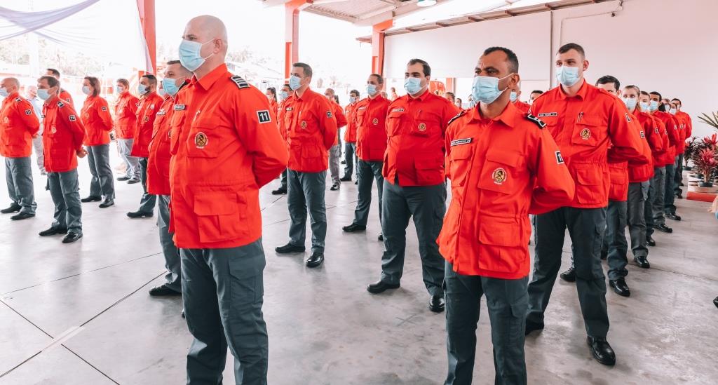 Os Bombeiros Voluntários de Corupá, corporação localizada no Vale do Itapocu, comemorou neste domingo (12 de setembro) seus 34 anos de fundação – data é celebrada no dia 15 de setembro -, com homenagens aos bombeiros com 5, 10, 15 e 20 anos de serviços prestados a comunidade e os com mais hora de trabalho nas escalas operacionais de 2020. Também apresentou o novo veículo para atividades de combate ao incêndio, modelo unidade tanque (UT). Pela primeira vez a Associação entregou a Ordem da Machadinha, comenda ofertada para ao Grupo Lunelli, principal financiador da nova unidade tanque.
