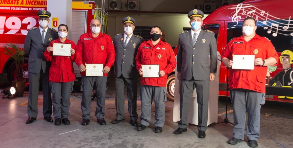 Como nas cerimônias tradicionais, o CBVJ homenageou e entregou certificados para os bombeiros com mais horas nas escalas operacionais de 2020; os bombeiros com mais anos de serviços (múltiplo de cinco – completados até julho desde ano) e os sócios remidos (40 anos de contribuição). A corporação também apresentou os novos veículos de combate a incêndio e resgate, de salvamento e tanque.