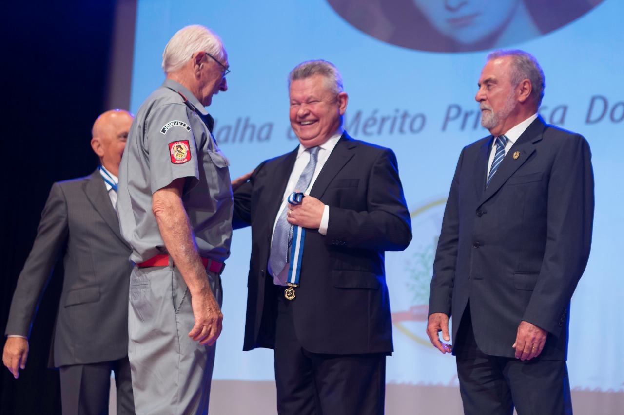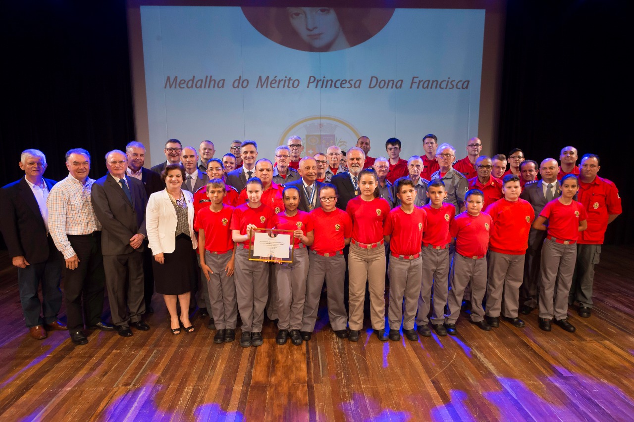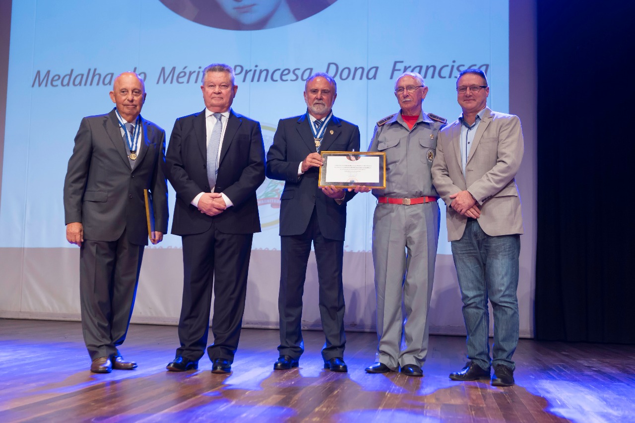 O Corpo de Bombeiros Voluntários de Joinville recebeu a mais alta honraria do município, a Medalha do Mérito Princesa Dona Francisca, durante cerimônia que ocorreu no último dia 8 de março, às 19h, no Teatro Juarez Machado.