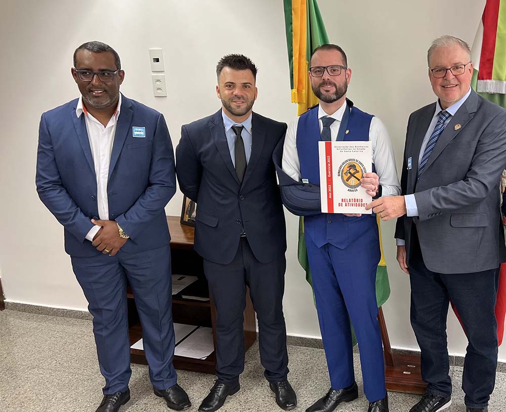 O presidente da Associação dos Bombeiros Voluntários no Estado de Santa Catarina (ABVESC) e secretário da Confederação Nacional dos Bombeiros Voluntários (Conabov), Ivan Frederico Hudler, juntamente com o presidente da Conabov e da Associação dos Bombeiros Voluntários do Rio Grande do Sul (Volunteresul), Anderson Jociel da Rosa; e do presidente dos Bombeiros Voluntários de Minas Gerais (Volunterminas), Fabricio Coelho, participaram das discussões na Comissão de Segurança Pública no Senado sobre o projeto de lei 3045/2022. A reunião ocorreu no último dia 4. O diretor e assessor jurídico da Voluntersul, Marcos Vinicius Manfio Júnior, também os acompanhou.