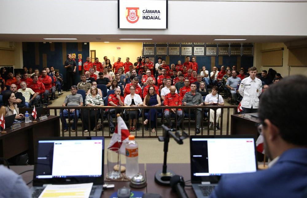 Plenário da Câmara de Vereadores ficou lotado por bombeiros que acompanharam a homengem e a troca de comanda do BV Indaial