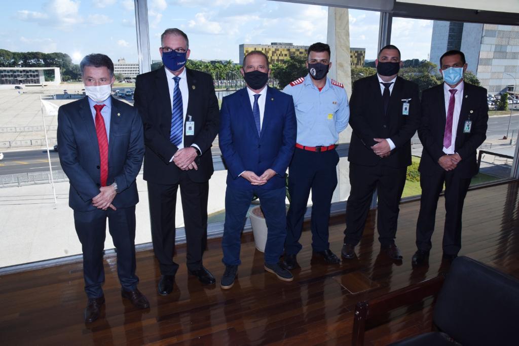 O presidente da Associação dos Bombeiros Voluntários no Estado de Santa Catarina (ABVESC), Ivan Frederico Hudler, e o presidente da Associação dos Bombeiros Voluntários no Rio Grande do Sul (Voluntersul), Anderson Josiel – secretário e presidente da Confederação Nacional dos Bombeiros Voluntários (Conabov), respectivamente -, juntamente com o deputado federal e presidente da Frente Parlamentar Mista em Defesa dos Bombeiros Voluntários, Darci de Matos, participaram de audiência com o ministro-chefe da Secretaria-geral da Presidência da República, Onyx Lorenzoni, nesta quarta (26.maio).