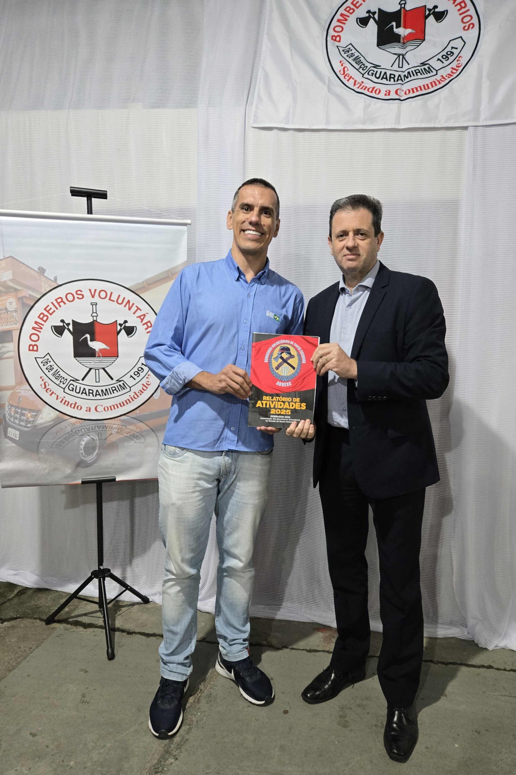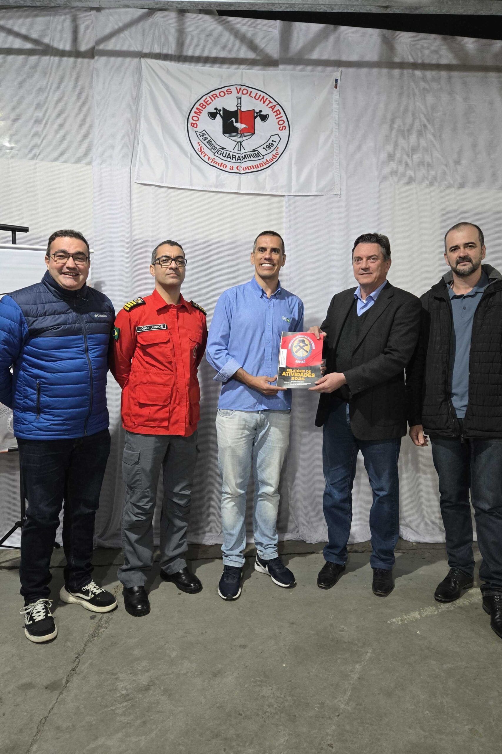 Durante o evento, o segundo diretor secretário da ABVESC entregou o Relatório de Atividades – Ano 2025, Exercício 2024 da entidade para o presidente dos Bombeiros Voluntários de Guaramirim. Já o comandante geral dos bombeiros voluntários de SC, João dos Santos Júnior, fez a entrega do documento para o prefeito Adriano Zimmermann e o vice-presidente da Câmara de Vereadores, Jocinei Barbosa.