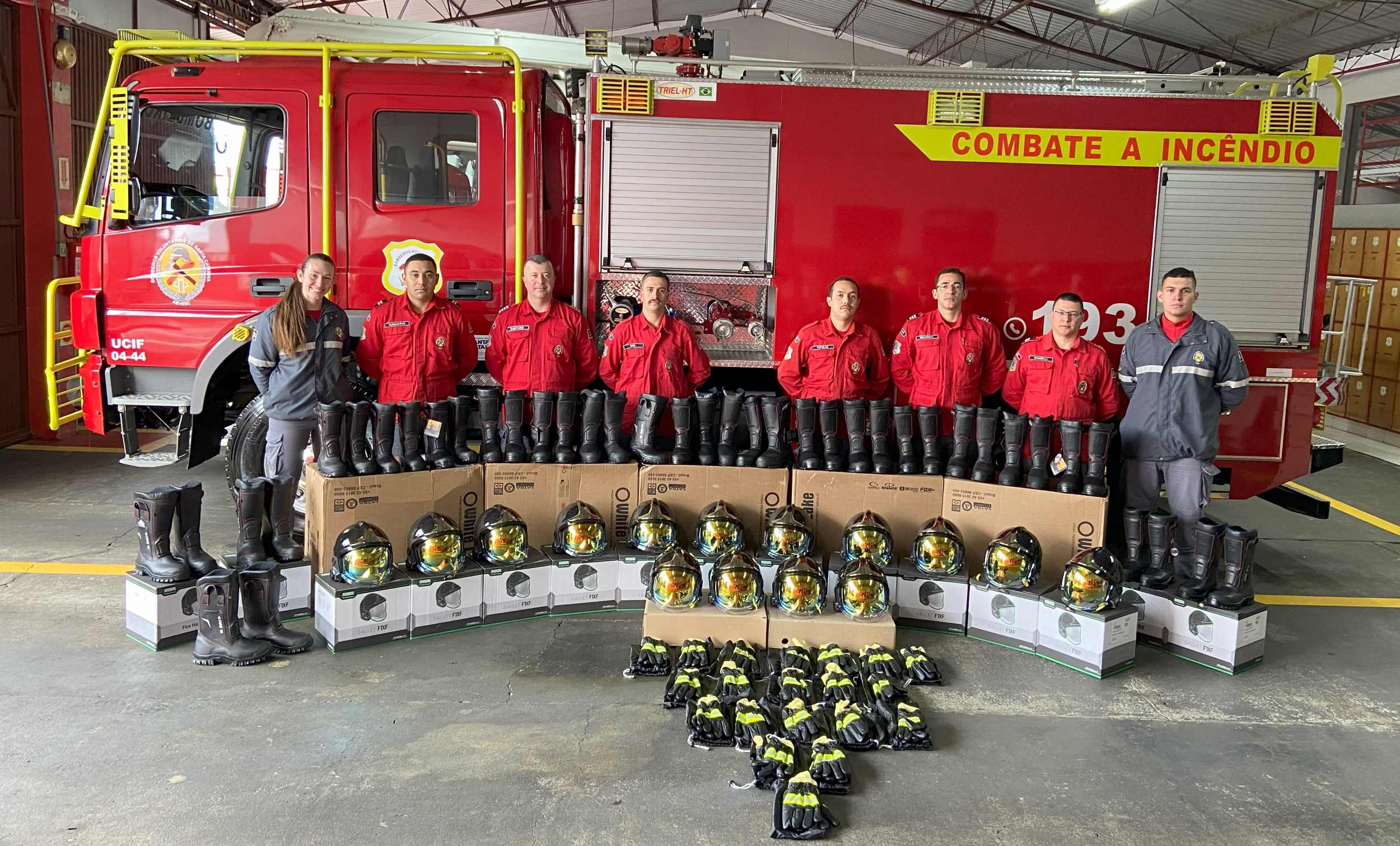 Capacetes, botas e luvas adquiridos pelos Bombeiros Voluntários de Caçador