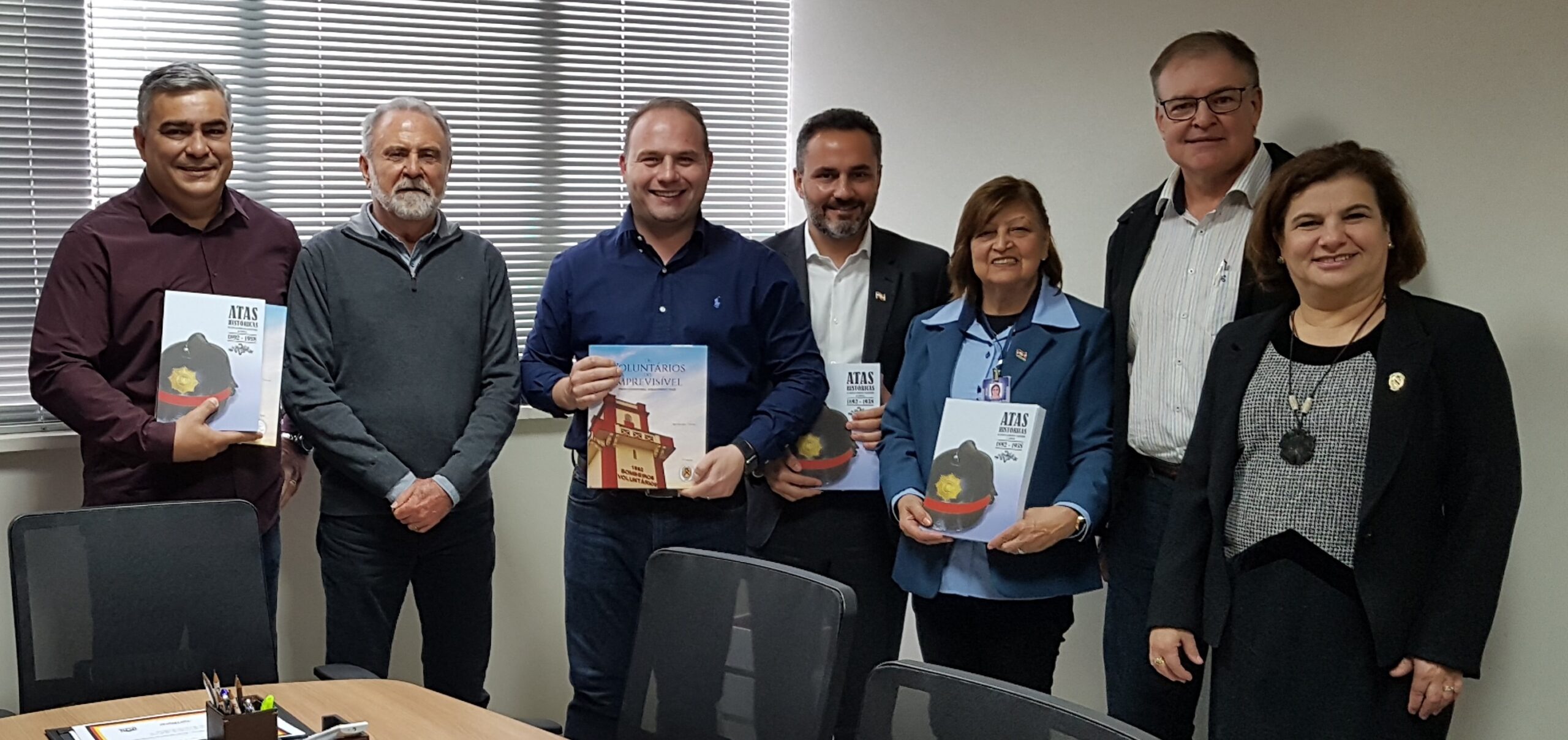 A Associação Corpo de Bombeiros Voluntários de Joinville recebeu a visita institucional, nesta segunda (2.setembro), do deputado federal e secretário da Frente Parlamentar Mista em Defesa dos Bombeiros Voluntários — reinstalada no Congresso em agosto deste ano —, Fábio Schiochet. O secretário de Estado da Articulação Nacional, Derian Campos, e o deputado estadual Sargento Lima integraram a comitiva. Eles foram recebidos pelo presidente e vice, Moacir Thomazi e Ivan Hudler, respectivamente.
