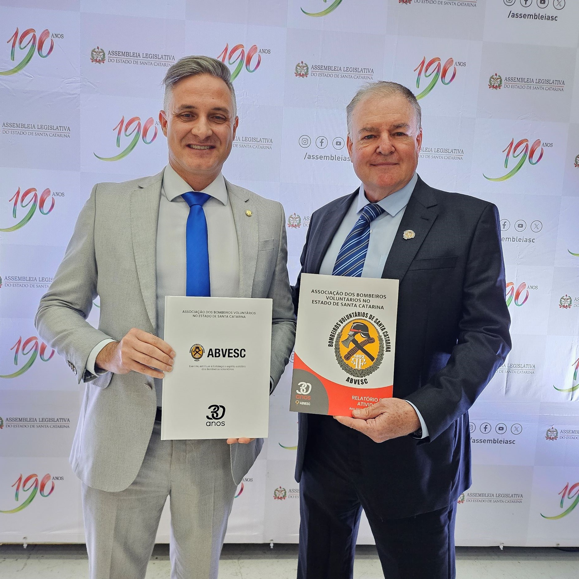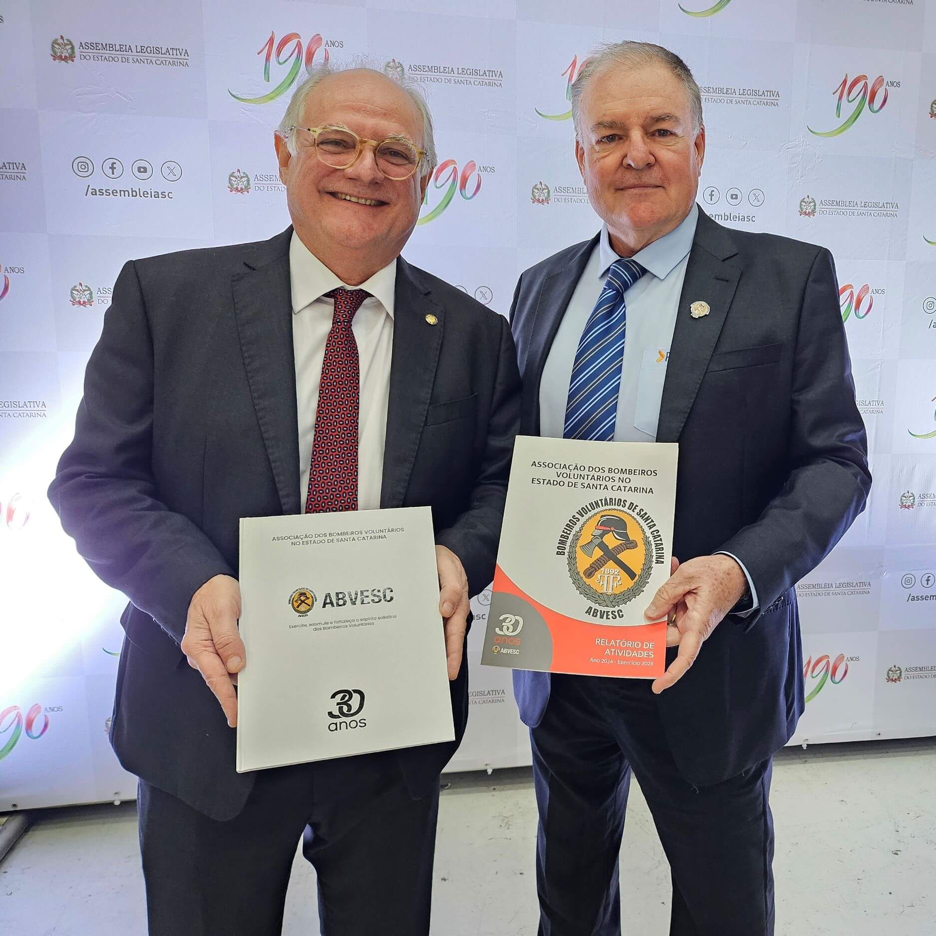 O convite para o pronunciamento partiu do deputado Dr. Vicente Caropreso, que integra a Bancada da Região Norte e Nordeste do Estado na Assembleia. O presidente da associação estadual aproveitou o evento para entregar o livro sobre a história dos 30 anos da ABVESC, completados em abril deste ano, e o Relatório de Atividades do exercício de 2023 para o presidente da Alesc, Mauro de Nadal, e os coordenadores da Frente Parlamentar em Defesa dos Bombeiros Voluntário, os deputados Dr. Vicente Caropreso e Matheus Cadorin.