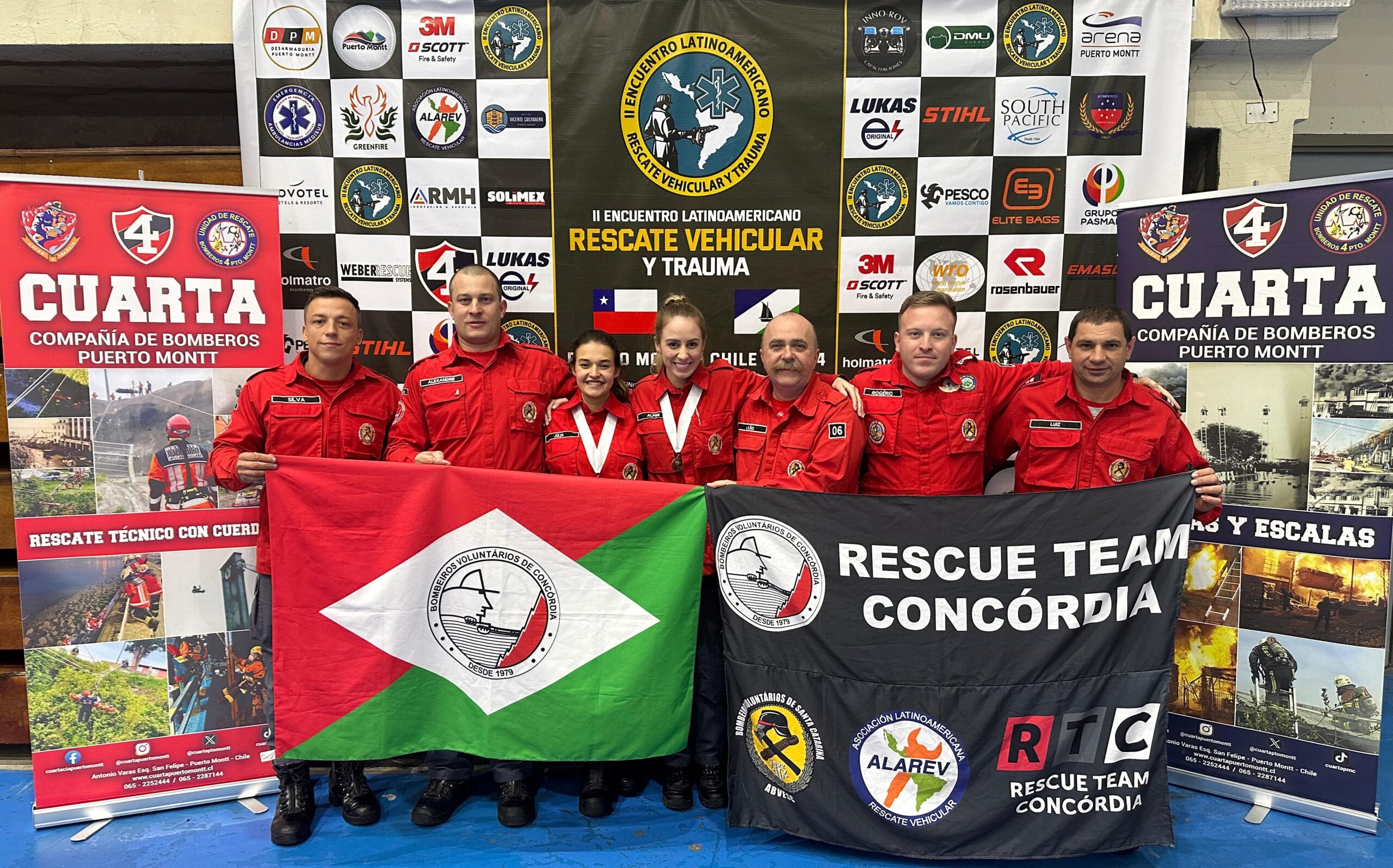 Quatro corporações de bombeiros voluntários filiadas a Associação dos Bombeiros Voluntários no Estado de Santa Catarina (ABVESC): Ascurra, Caçador, Concórdia e Treze Tílias, participaram, de 17 a 19 de maio, da segunda edição do Encontro Latino Americano de Resgate Veicular e Trauma. O evento é promovido pela Asociação Latino Americana de Resgate Veicular (ALAREV) e foi realizado pela 4ª Cia. de Bombeiros de Puerto Montt, Chile.